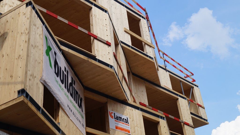 Immeuble R+5 en CLT Rue de l’inquiétude (NAMUR) – Pose de la structure bois